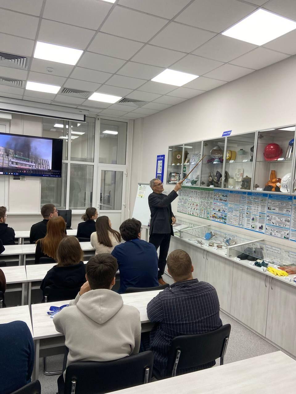 Начальник службы по охране труда, экологии и пожарной безопасности Петушков Е.А. рассказал присутствующим о действиях в условиях чрезвычайных и нештатных ситуаций, а также об оказании первой помощи.