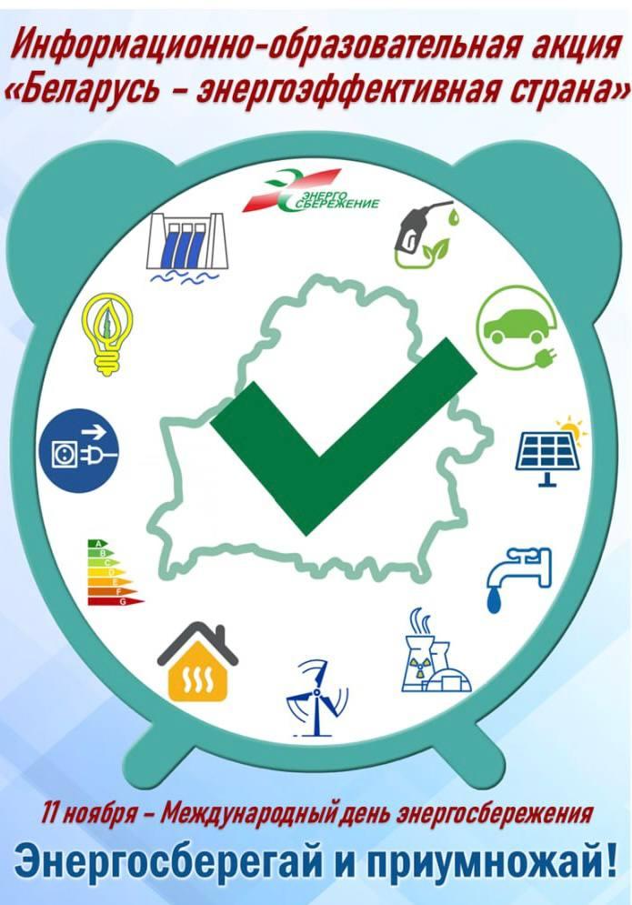 С 10 по 20 ноября 2025 года Департамент по энергоэффективности проводит республиканскую информационно-образовательную акцию «Беларусь – энергоэффективная страна». Она приурочена к международному Дню энергосбережения, который ежегодно отмечается 11 ноября.