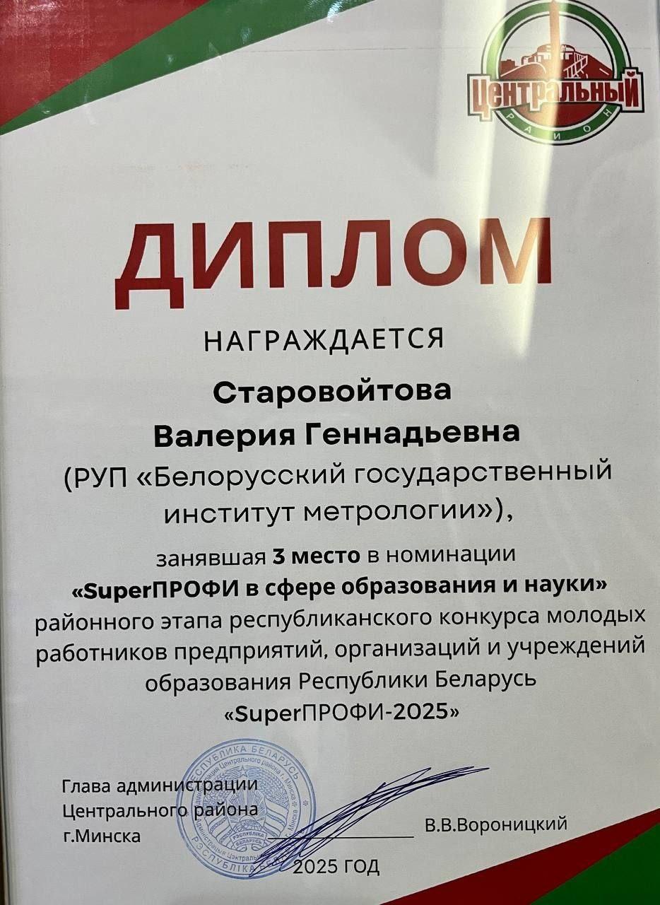 Старовойтова Валерия, инженер по метрологии ПИО температурных и теплофизических измерений, заняла 3 место в номинации "SuperПРОФИ в сфере образования и науки".